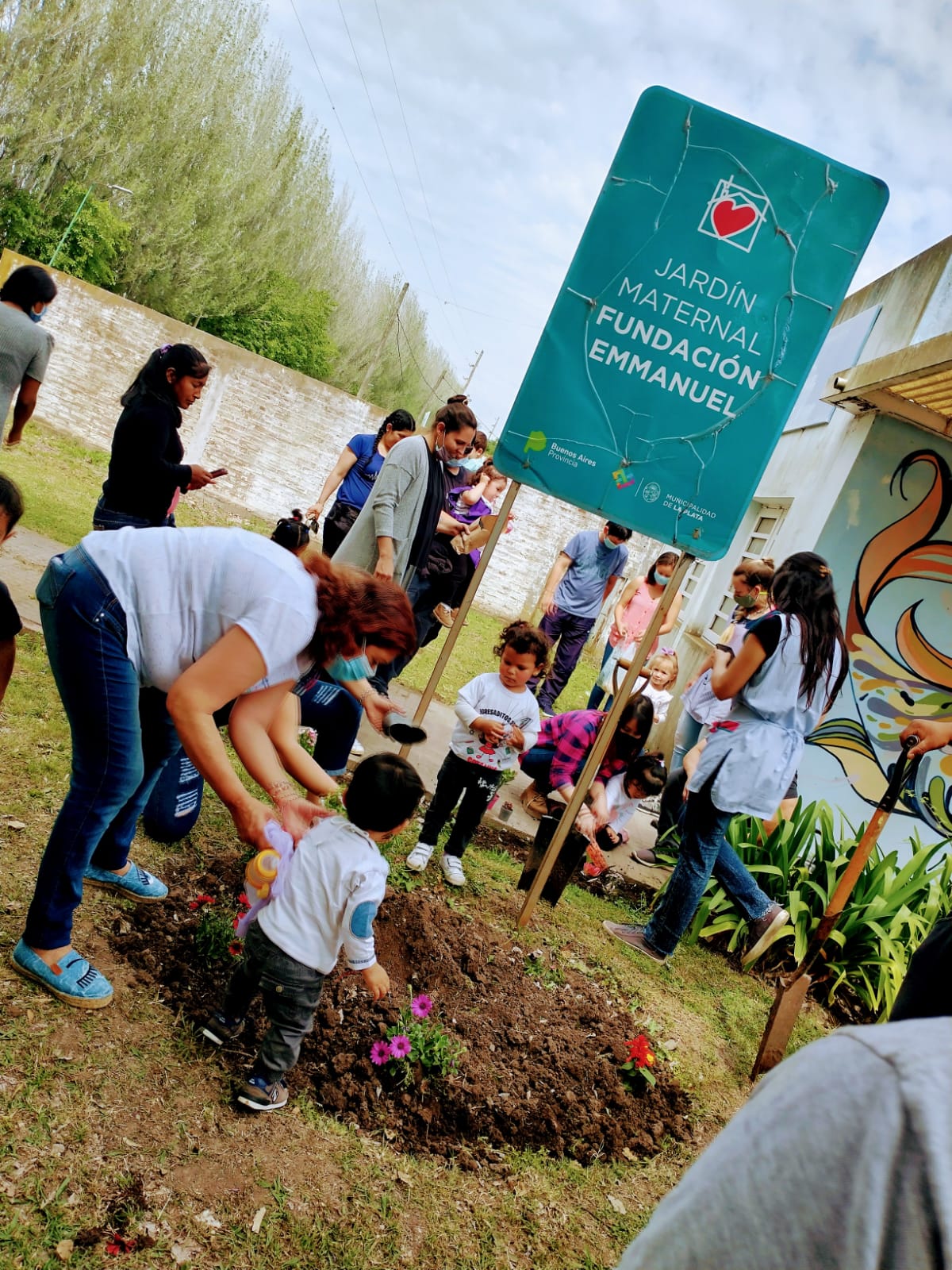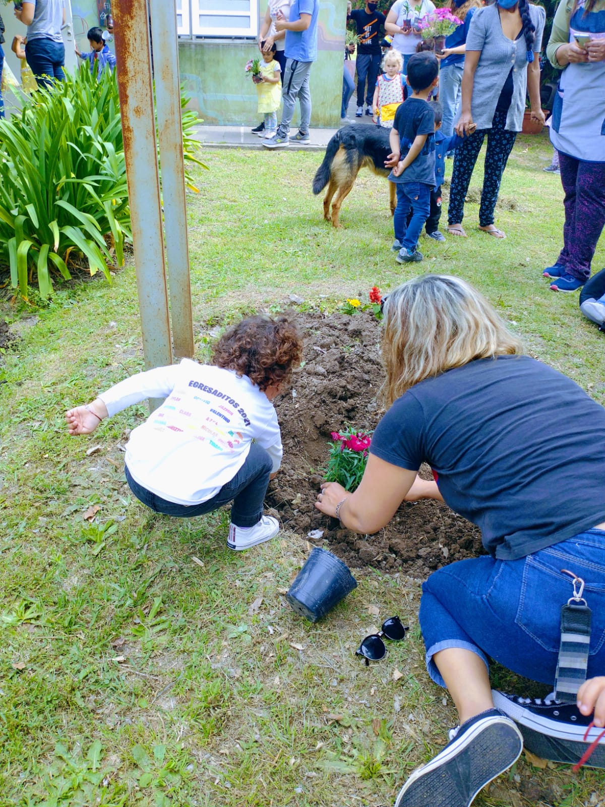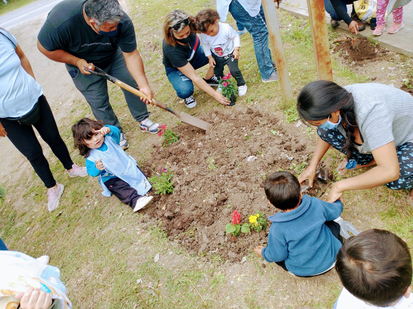 Junto a las familias decidimos que una linda y tierna forma de celebrar su día era plantar junto a sus niños/as flores de muchos colores en el parque del maternal.