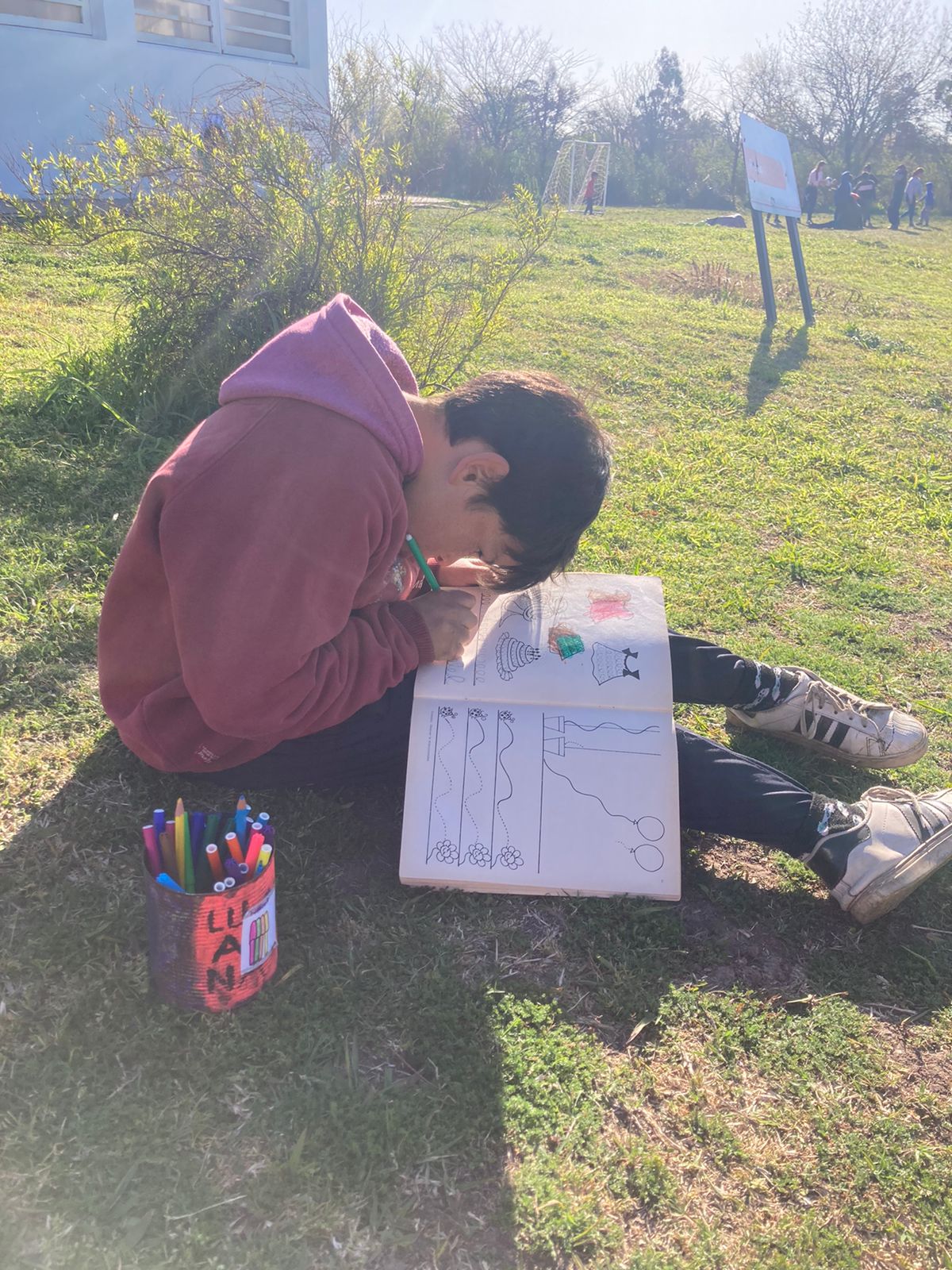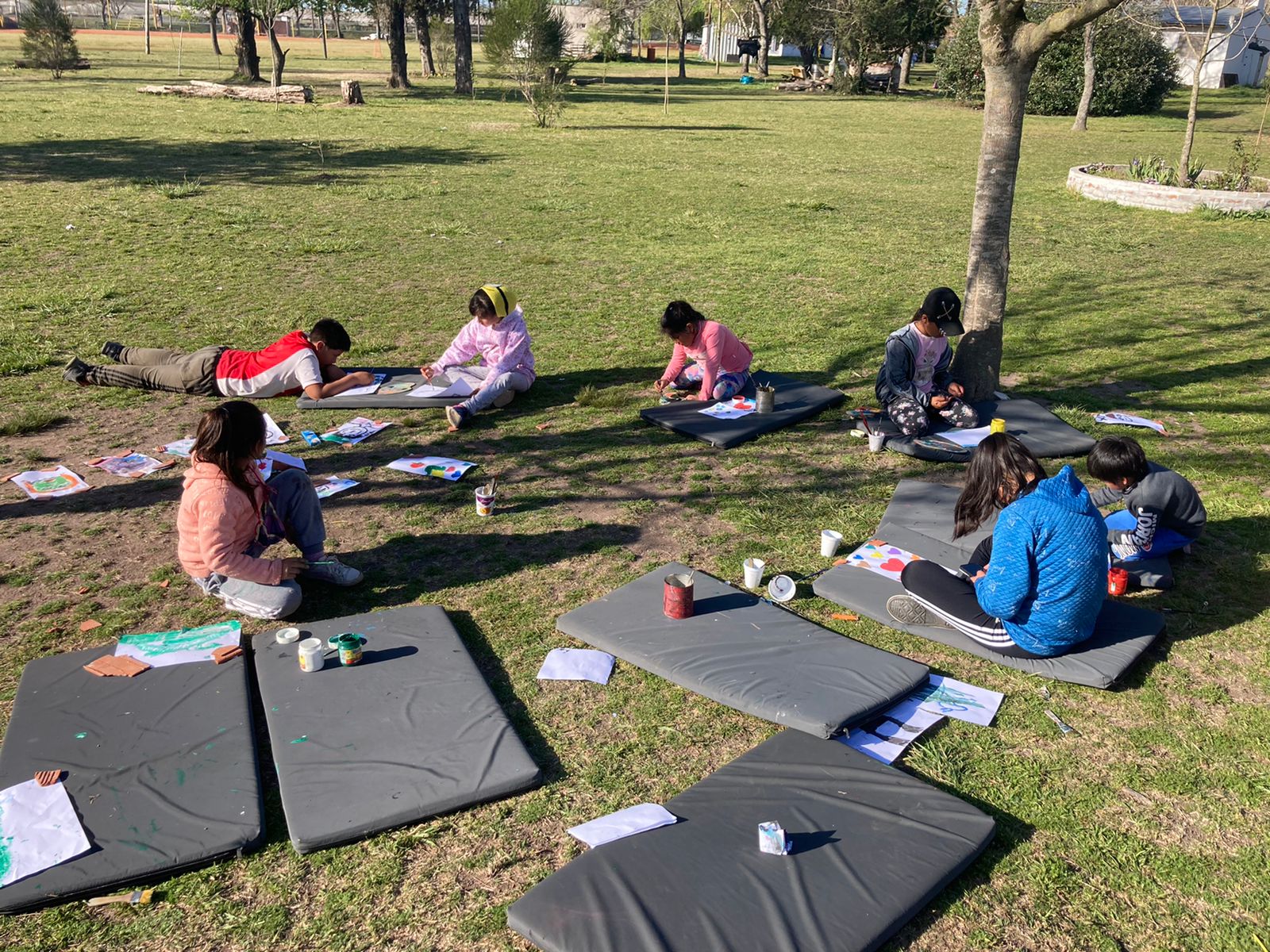 En un día de mucho sol y tranquilidad, se aprovechó para realizar una clase de Arte al aire libre… Tanto lxs pequeños como lxs más grandes disfrutaron muchísimo pintando en el parque de La Funda, creando obras a partir de la imagen de sí mismos, mucha concentración, mucho color y un poco de emociones fueron los temas para esta propuesta. ¡Estamos orgullosos de nuestrxs artistas!